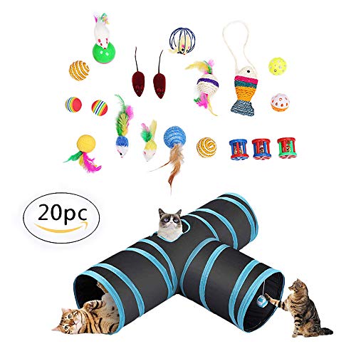 MCdream Cat Toys Cadeau Jouet pour Chat Lot de 3 Voies Cat Tunnel Herbe à Chat Jouets interactifs Jouets pour Chat Chaton pour l’intérieur Lot de 20