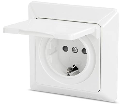 Prise de courant UP pour pièces humides avec couvercle à ressort IP44 - Convient pour boîtes d'interrupteurs de 60 mm…
