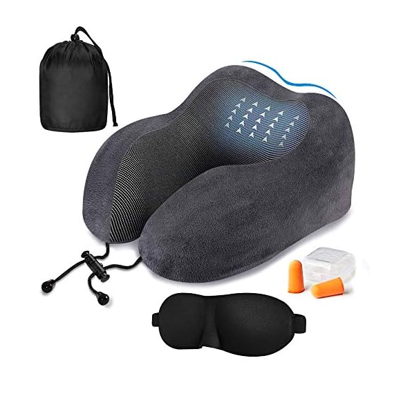 Oreiller de Voyage , otumixx Mousse à Mémoire Oreiller Ergonomique avec 360° Tête et Cou Support Parfait Coussin de…