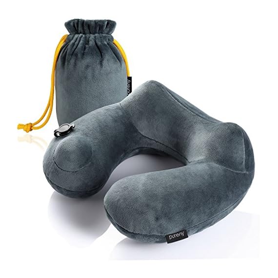 Purefly Oreiller de Voyage, luxueusement Doux, Oreiller Tour de Cou Gonflable, léger pour Dormir sur Avion, Voiture et…