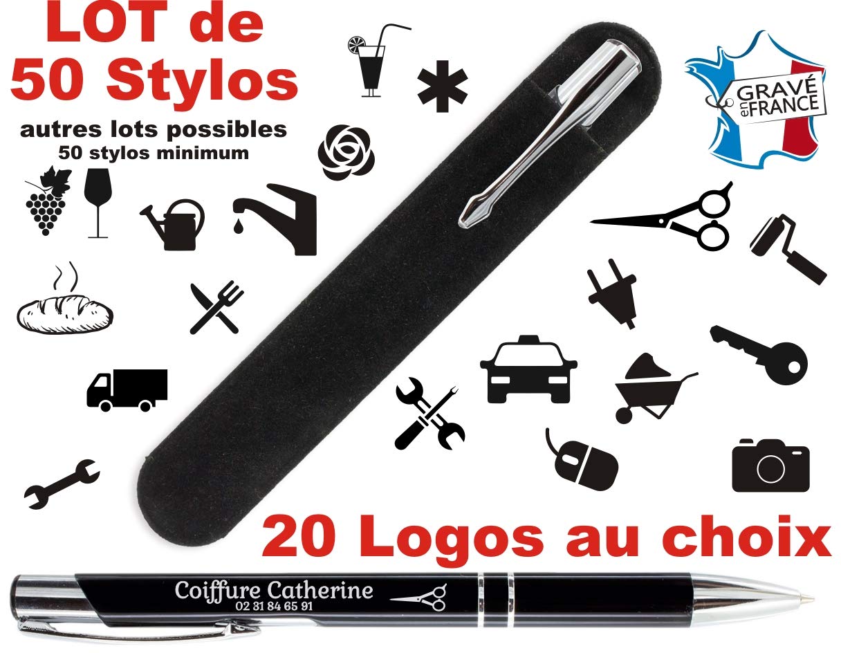 Lot de 50 Stylos personnalisé Logo pour Professionnels – Stylos société goodies – Stylo publicitaire gravé au nom de l…