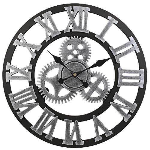 Soledì Horloge murale 3D à engrenages, en bois européen, style rétro, fabriquée main Colore Rame