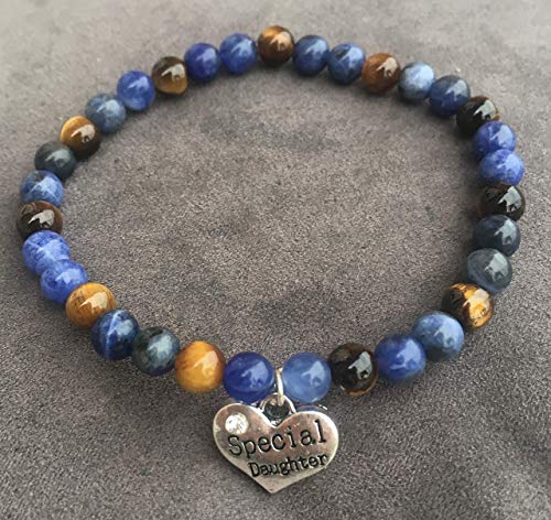 bracelet Fête des Pères OEIL DE TIGRE ET SODALITE Protection et Communication Spécial Daughter