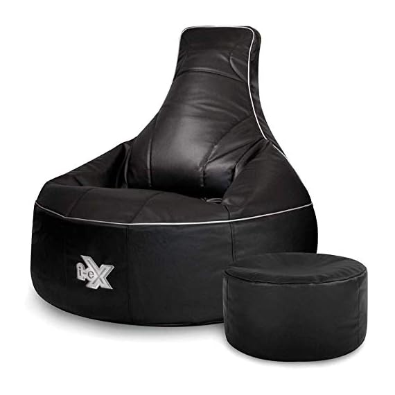 i-eX Pouf spécial Gamer, Noir, Grand, Similicuir, Chaise de Jeux, Faux Cuir