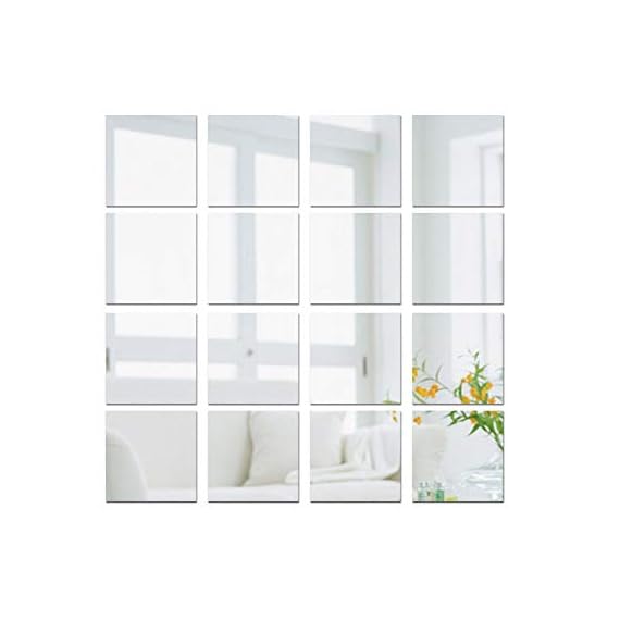 JNCH 16pcs Stickers Miroirs Autocollants Carrés Miroir Mural Adhésif 3D Décoratif Acrylique Amovible pour Salon Chambre…