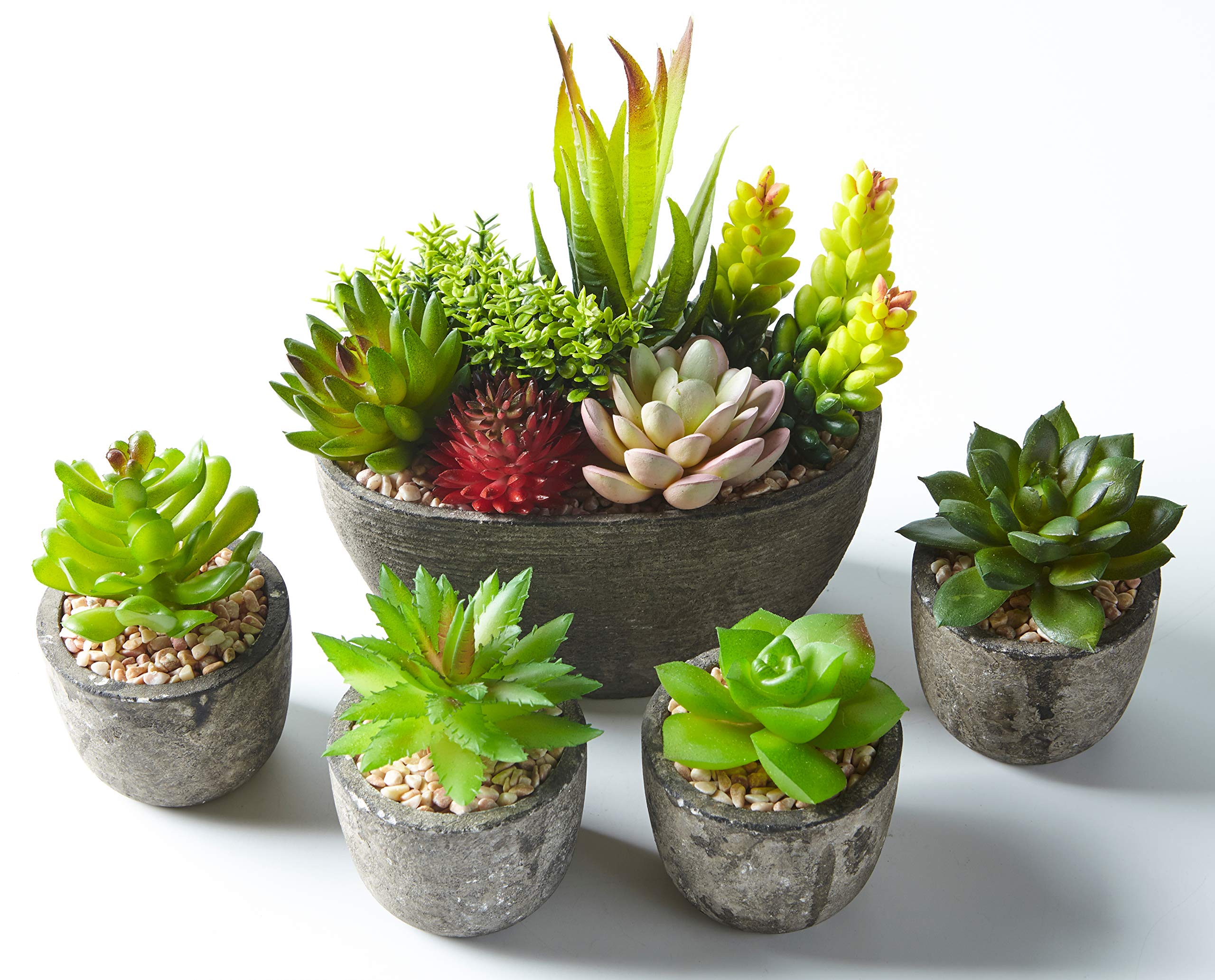 Jobary Ensemble de 5 Pots artificiels Succulents (Comprenant 10 Plantes), Faux Plantes succulentes colorées et…
