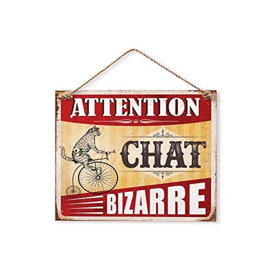 Plaque Décorative en Métal 20×20 cm – Attention Chat Bizarre