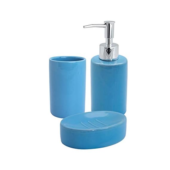 Port Housewares 3 pièces en céramique Salle de Bains Accessory Set – Distributeur de Savon/Plat/Tumbler – Bleu