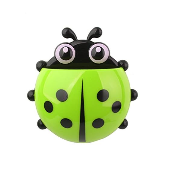 Porte Brosses à Dents Forme de Coccinelle Support Rangement à Ventouse Décoration de Salle de Bain Enfant (Vert)
