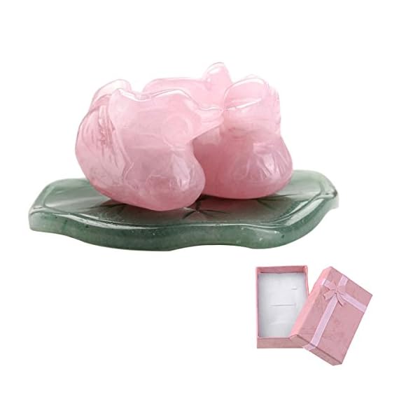 QGEM Pierre Canards Mandarins Couple+Feuille de Lotus Déco de la Maison Symbole d’Amour en Quartz Rose Aventurine Vert