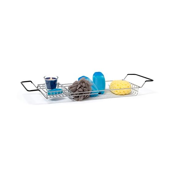 Relaxdays 10019246 Pont de baignoire Plateau accessoire salle de bain rétractable 2 compartiments H x l x P H x B x T: 8…