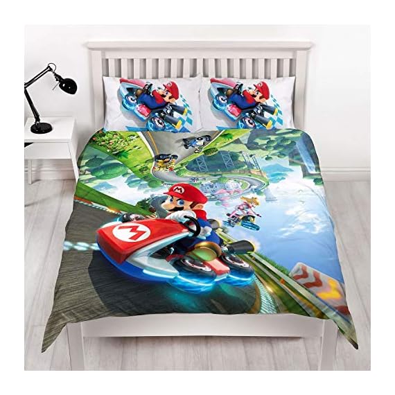 Super Mario Kart Nintendo Housse de Couette Double réversible avec taie d’oreiller Assortie Multicolore