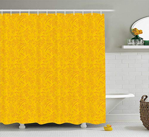 tgyew Floral Shower Curtain, Autumn Colored Bay Leaf Pattern with Blueberry Figures Fall Season Artful Illustration…