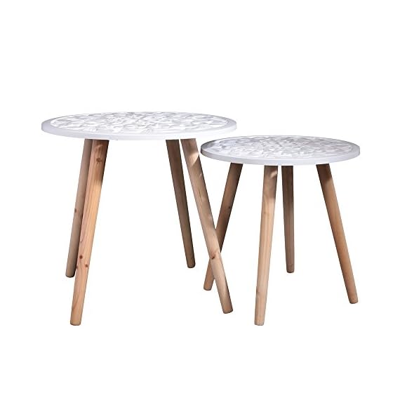 THE HOME DECO FACTORY Tables Gigognes Plateau Rond Arabesque – 2 pcs, Bois + MDF, 49 x 49 x 48 cm