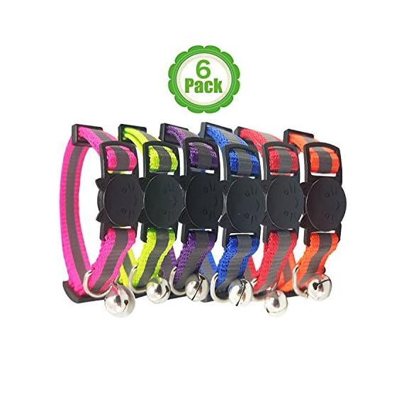 Bemix Pets Collier pour Chat réfléchissant avec Clochette, Set de 3 ou 6, Solide et sûr, Nylon, Couleurs mélangées…