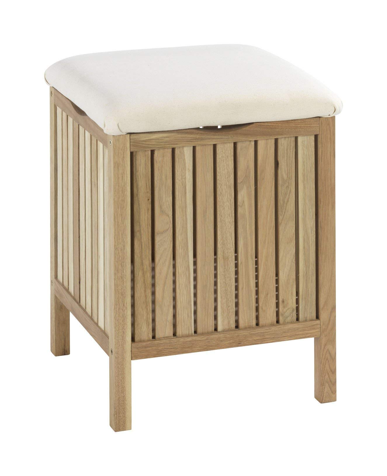 WENKO Tabouret panier à linge « Norway », Panier à linge Bois, Noyer, 39x52x39 cm