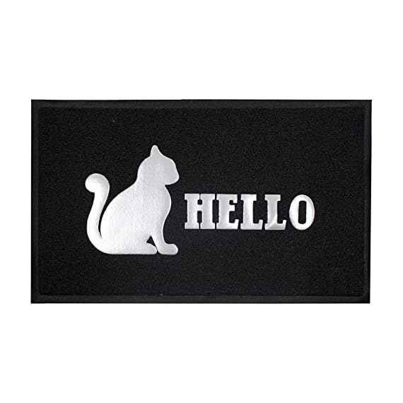 Déco Tapis HELLO CAT Tapis d’Entrée Rectangle, PVC, Noir/Gris, 45×75 cm
