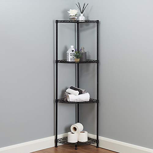 Generic Métal Blac Métal Noir Athroom S étagères de Rangement Noir Shel Etagère Affichage Rack Tier d’angle de Salle de…