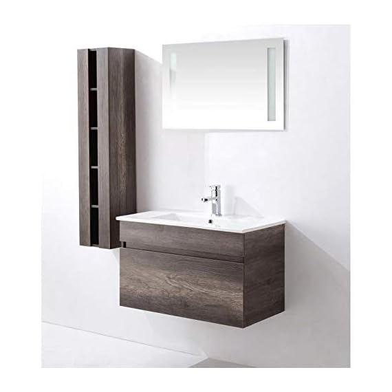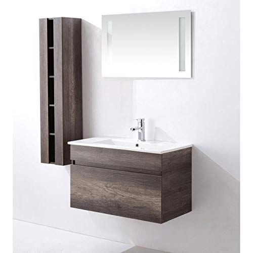 Générique ALBAN Ensemble Salle de Bain Simple Vasque avec Miroir L 80 cm – Décor Bois Vintage