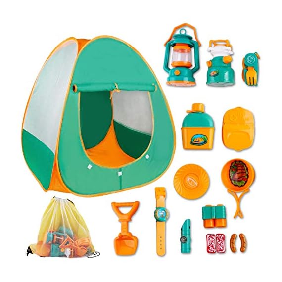 deAO Kit de Camping et Kit de Survie avec Tente, Accessoires d’Extérieur, Jeux pour Enfant Découverte de la Vie en…