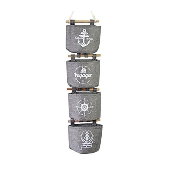 Hoomall 1Set(4pcs) Sac de Rangement Suspendu Panier Pochette de Rangement Sac Organisateur Mural en Tissu Lin et Coton…