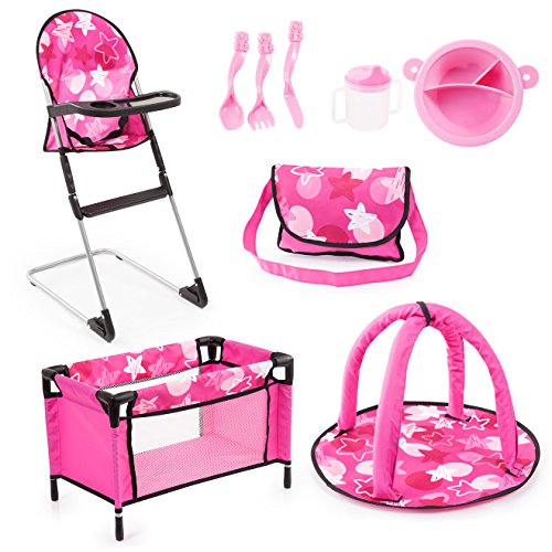 Bayer Design 61749AB Ensemble 9 en 1 pour des poupées avec une chaise haute, un sac, une assiette avec couverts et…