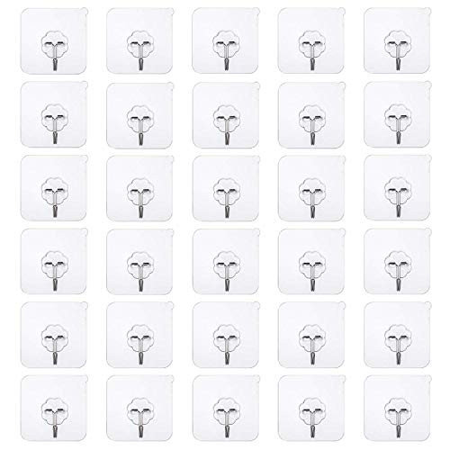 [lot de 30]Crochets adhésifs 22 lb/10kg Max Heavy Duty Transparent réutilisable Crochet mural à ongles gratuit, pas de…
