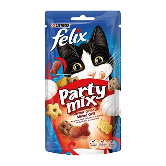 Felix Party Mix Saveur Grillade Friandises Bœuf/Poulet/Saumon pour Chat 60 g