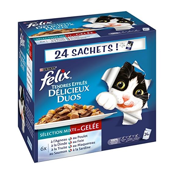 Felix Ptée pour Chat Effilés Viande et Poisson, Les 96 Sachets, 24 x 100g (Lot de 4)