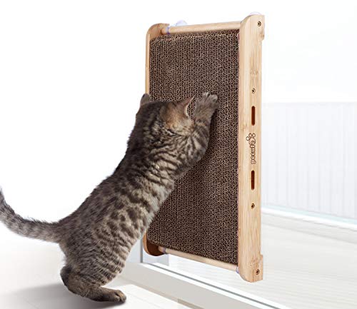 Pecute Griffoirs Chats en Carton Ondulé, Grattoir pour Chat avec Herbe à Chat, en Support Bambou Naturel avec 4…