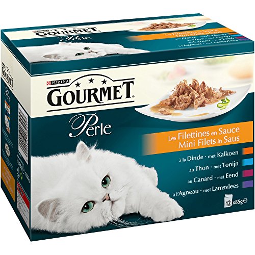 Perle Gourmet Les Filettines en Sauce Repas pour Chat Adulte Dinde/Canard/Agneau/Thon 12 x 85 g
