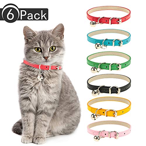 Yorgewd Lot de 6 colliers en cuir pour chat avec clochette amovible et boucle en métal durable et doux et réglables pour…