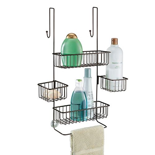 mDesign étagère de douche à suspendre à la porte de la douche – serviteur de douche pratique sans perçage – valet de…