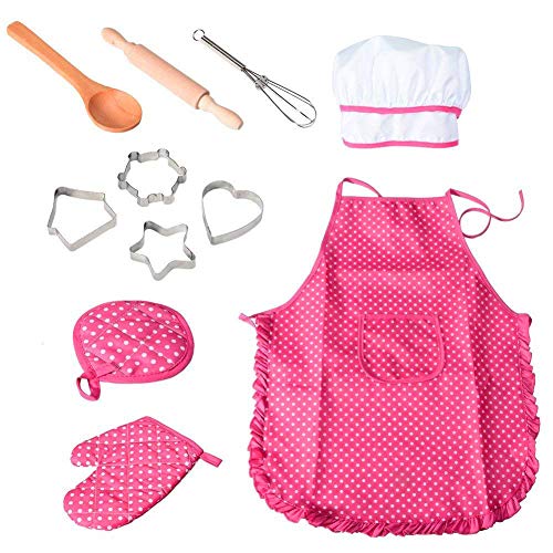 11 pcs Chef de Cuisine Costume Enfants Comprend Tablier, Toque de Chef, Gant et ustensiles et Autres Accessoires pour…