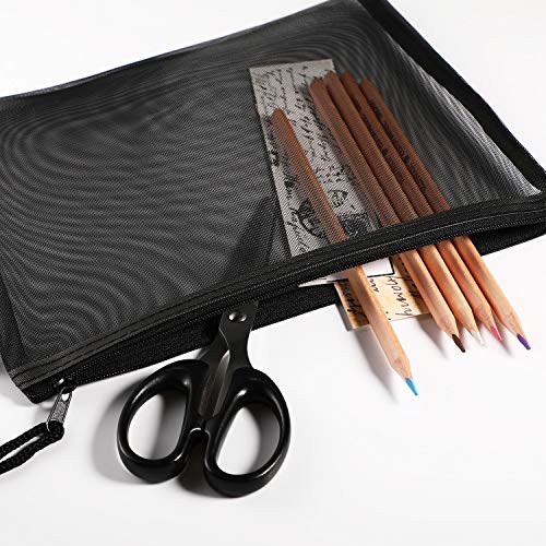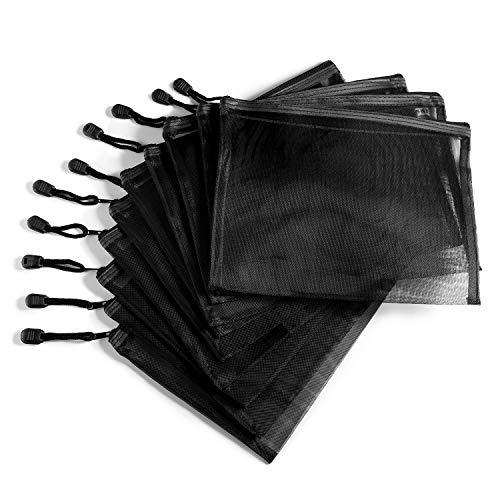 10 Pièces sacs en maille noirs sacs de maquillage sacs de rangement de voyage de cosmétique pochette zippée en filet trousse de crayons, 9,5 x 7,5 pouces