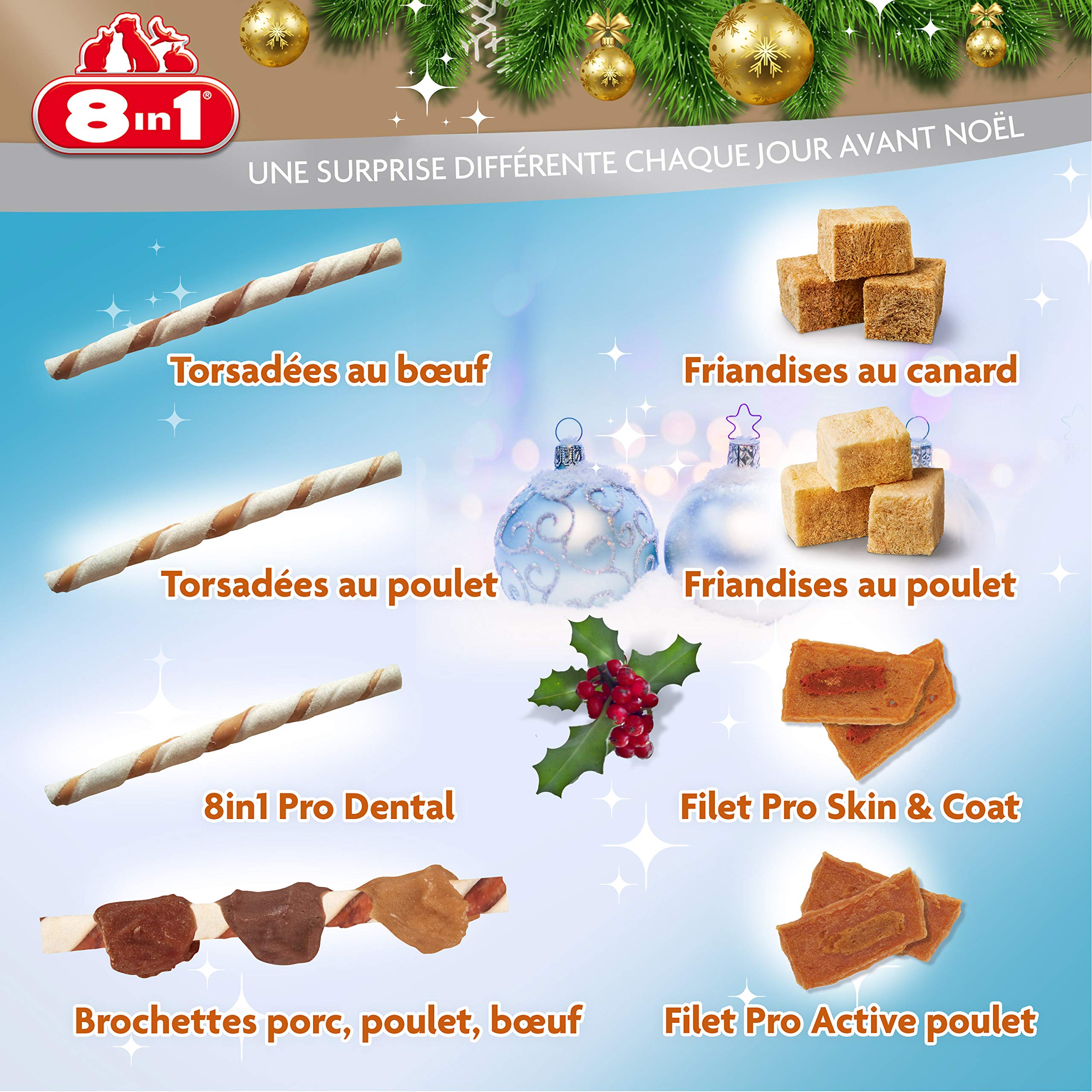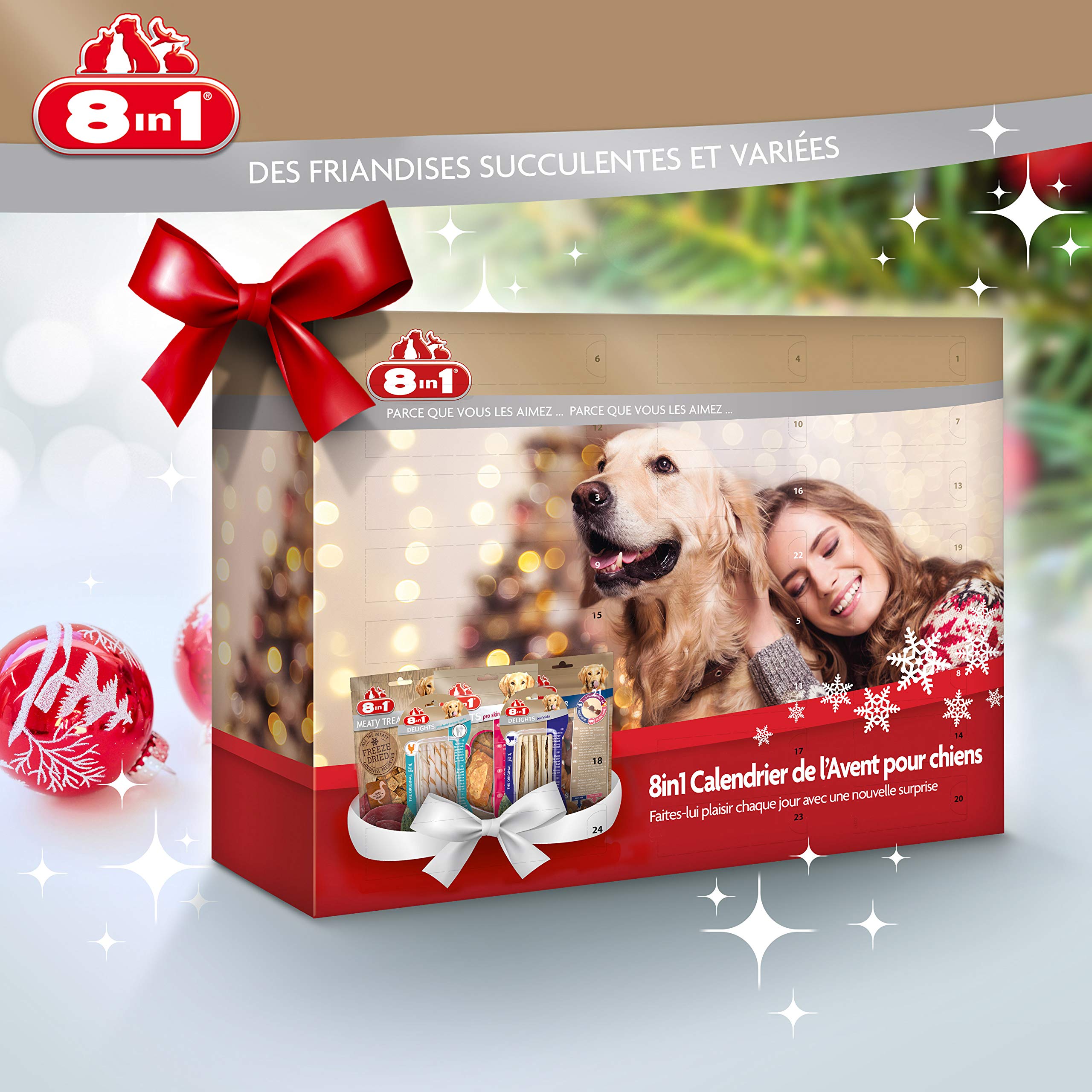 🎁NOEL POUR EUX AUSSI🎁:Avez-vous pensé à votre chien dans Noël ? 8in1 vous propose un calendrier de l’Avent pleins de surprises dans lui. Ainsi votre auxiliaire à quatre pattes profitera aussi de la magie de Noël