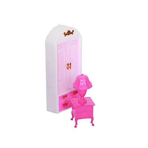 Achidistviq 4 pcs enfants Fille Maison de jeu poupée Chambre à coucher Lit lampe de table Armoire Accessoires jouet
