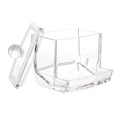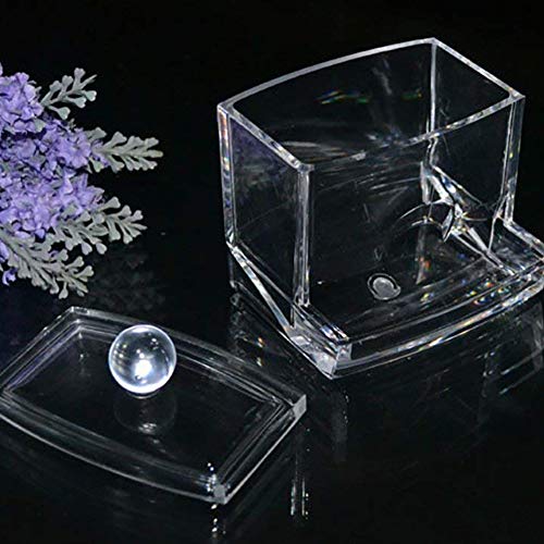 VENEZ AVEC LA POUBELLE: acrylique clair récipient orné d’un couvercle, Accessible d’arrivé, des cotons-tiges sortent du aven du support. Rechargeables et élégant. Gardez les tampons de coton propre et propre.