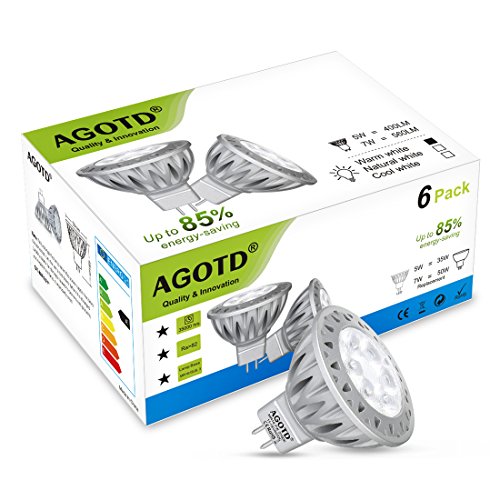 √ Pack 6er, MR16 GU5.3 7W 12V Réchauffeur Blanc froid conduit bulb.50mm Diamètre, 1.97×1.89 pouces, Non dimmable. 38 degrés. Peut facilement être monté sur des lampes halogènes régulières MR16 gu5.3 à deux broches.