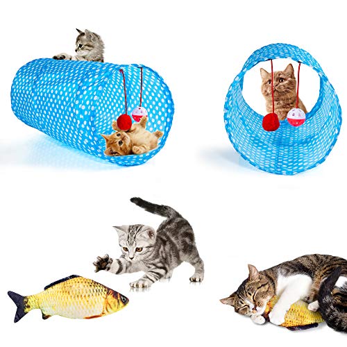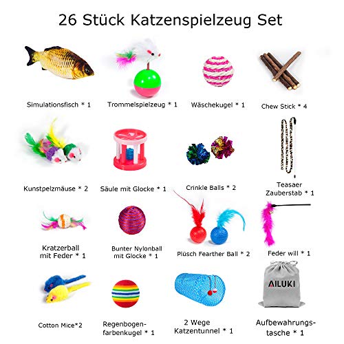 【Jeu de jouets à cause chat】 Il y a 26 jouets différents à cause chat, y compris le tunnel de chat, le jouet de souris, le poisson jouet, la cloche et d’autres jouets différents.