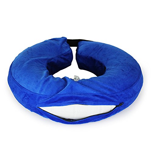 Un port répétée : tissu bleu se composent d’une bague extérieure et une bague intérieure en plastique blanc.L’anneau accueil est fabriqué en peluche courte, doux à cause la peau, et le cercle intérieur fabriqué en matériau en PVC a une bonne résilience après inflation. Votre chien ne se sentent opprimées ou nerveux portant ce doux, chaud et répétée.