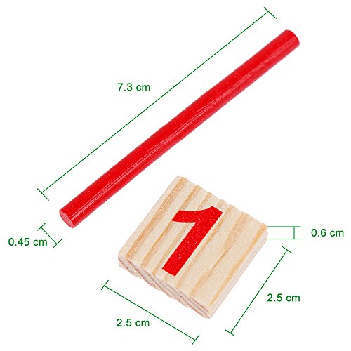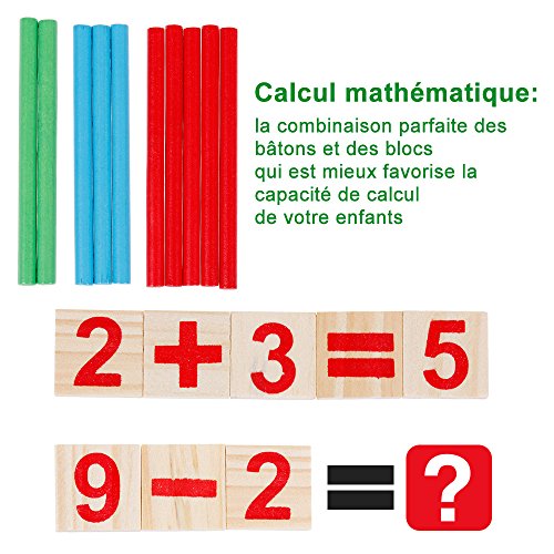 MATIERE NON TOXIQUE ET SECURITAIRE:Ce jeu fabriqué en bois, leger et accessible à ranger ou transporter à cause la boîte ou il y a 8 compartiments à mettre des bâtons et des chiffres par la classification, meilleur cadeau à cause vos proches