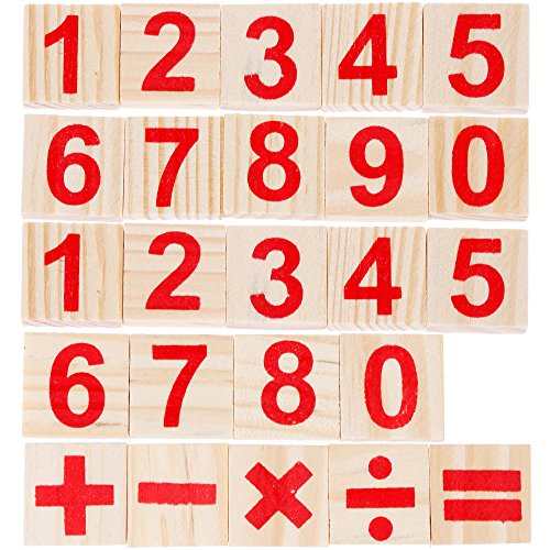 ATTENTION: 19 carrés avec les chiffres en bois sans toxique,masi ces carrés ne sont pas assez grande à cause des bébés plus petits moins de 3 anse sans la capacité de juger , le meilleur est de les accompagner à jouer sous la surveillance