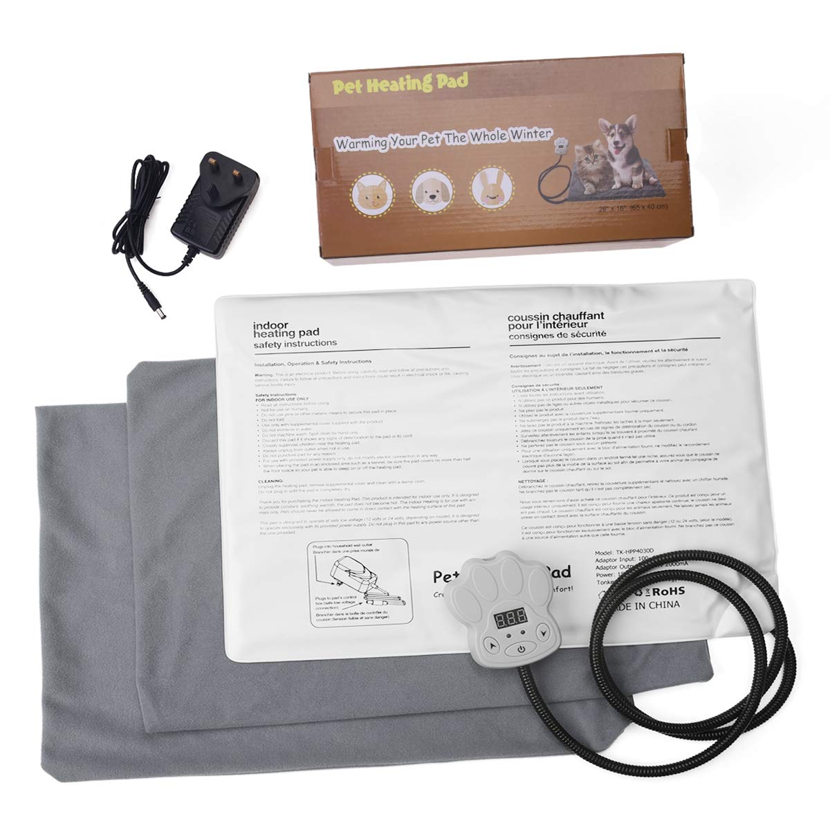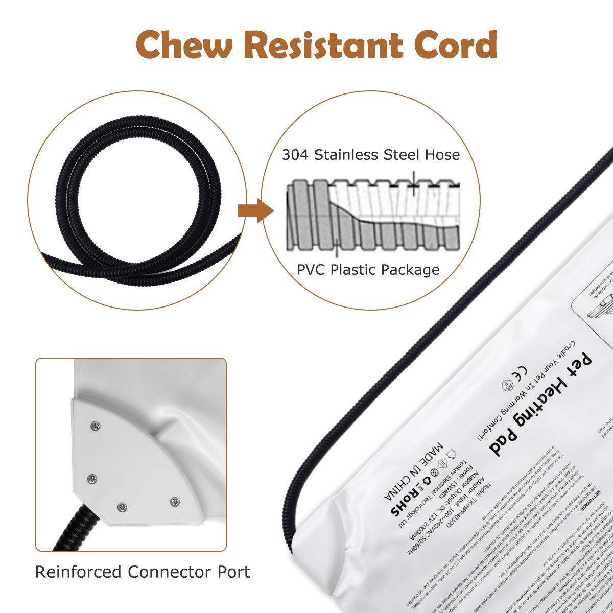 【Contrôle de la température constante】: Le coussinet ne chauffe que jusqu’à la température recommandée par le vétérinaire. Lorsque le coussin chauffant atteint la température que vous avez définie, il s’éteindra automatiquement. Une fois que la température est inférieure à celle que vous avez définie, il se lancera automatiquement. L’adaptateur basse tension hassecurity.
