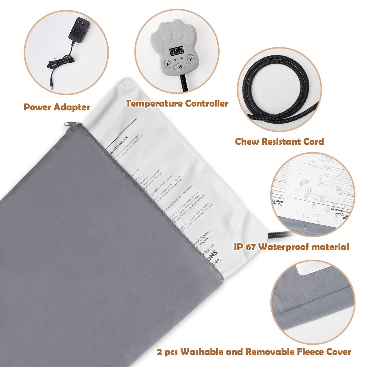 【IP67 étanche et résistant à l’humidité et résistant à la mastication】: tissu oxford durable et matériau imperméable pour des chocs durables, confortables, souples, imperméables, sans poussière et anti-électriques (garantissez la sécurité de votre animal). La couverture douce et amovible est facile à nettoyer à la machine ou à la main.