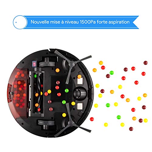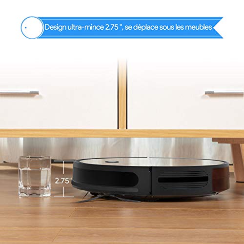 ♛【Performance Unique】C’est sans doute le robot de plus petite hauteur, 6.9 cm (2.75″), sur le marché, avec une puissante aspiration de 1500 Pa et seulement 55 dB de Sien. Il sert à enlever des poils, débris et taches à cause des moquettes et sols durs et il peut atteindre des endroits inaccessibles et des meubles profonds.
