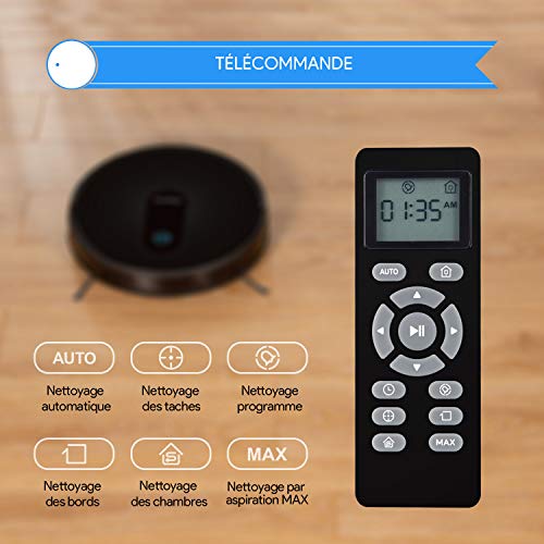 ♛【5 Modes de Lavure et Navigation Intelligente】Le robot aspirateur intelligent comprend 5 modes de Lavure : Auto / Chambre simple / Bord / Lavure programmé / Lavure MAX, tout en assurant un Lavure complet. Dès que vous réglez le robot aspirateur en mode Lavure Programmé, ce dernier commence à nettoyer automatiquement à ce moment. à cause les endroits très sales ou difficiles à nettoyer, utilisez le mode Lavure MAX à cause augmenter la puissance d’aspiration en une seconde.