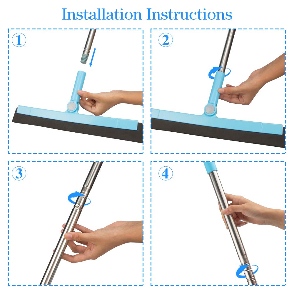 Rattaché de 180 Degré: Cette raclette de plancher peut nettoyer facilement les coins négligés. Largement plus connivence et efficace que la vadrouille traditionnelle.