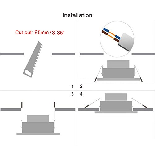 4. Diamètre du trou de montage: 85mm quasi; Dimension de spot(ØxH): 105 x 55 mm; Pack en 4 spots encastrés