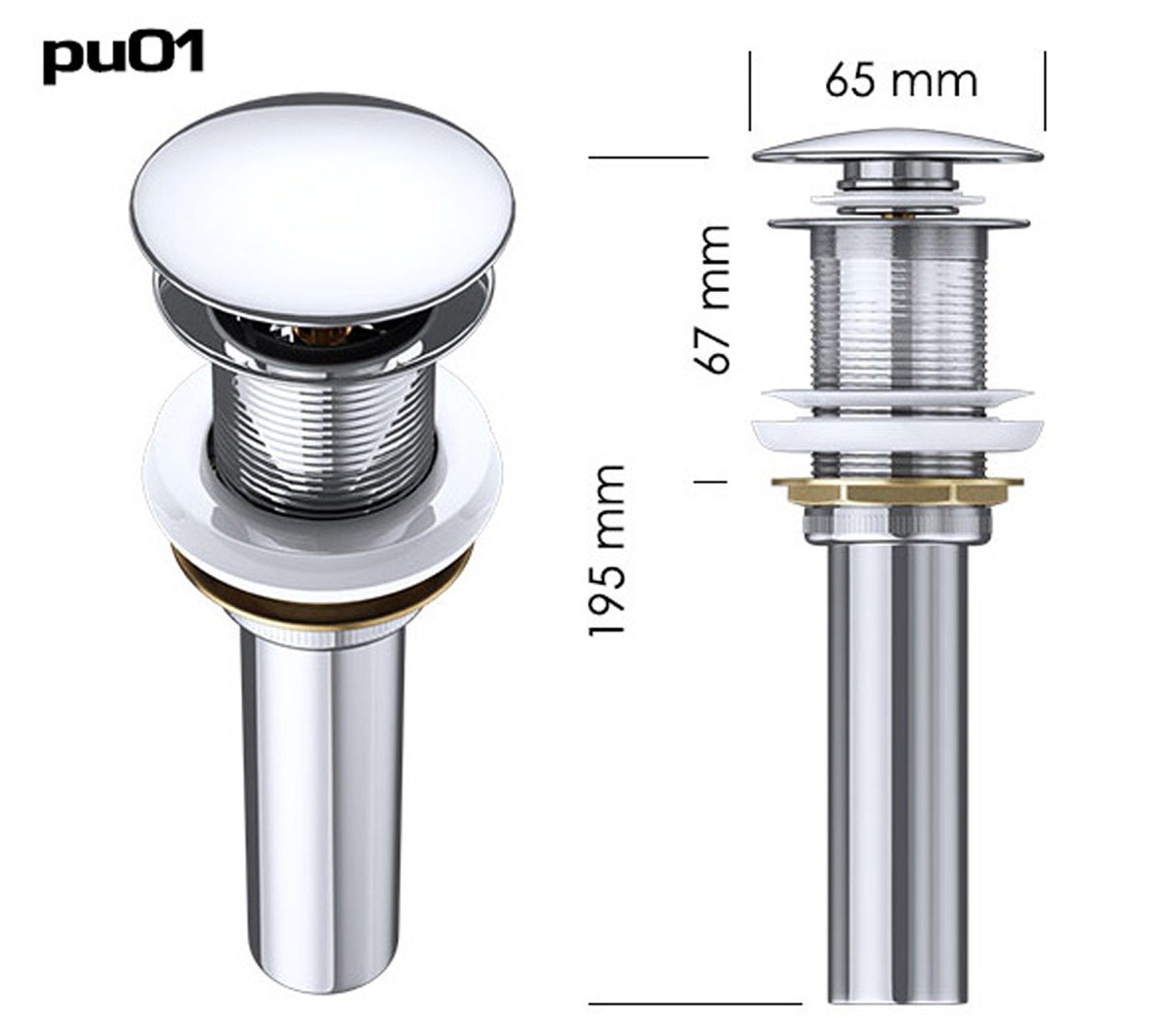 Sogood Bonde de lavabo et vasque chromé sans trop plein système automatique clic-clac PU01